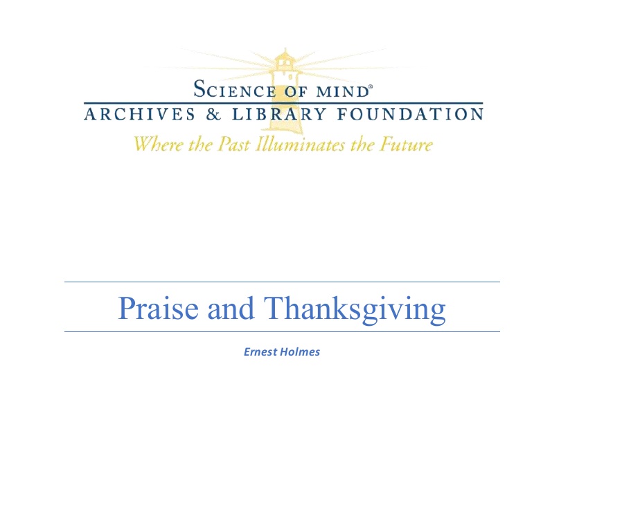 PDF transcript of Ernest Holmes FM Radio Show on KMLA-FM in Los Angeles on November 23, 1958.